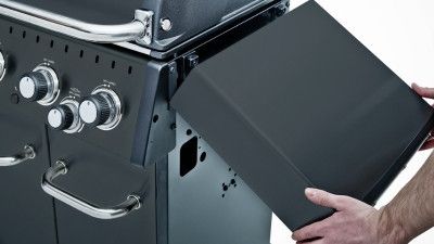 Baron™ 490 Shadow IR posiada szafkę, w której oprócz 11-kilogramowej butli z gazem pomieszczą się również ulubione akcesoria i narzędzia do grillowania. W ich lepszej organizacji pomoże organizer akcesoriów do szafki. Na półce bocznej umieścić możesz dedykowany grillom z serii Baron™ pojemnik na przyprawy czy napoje.