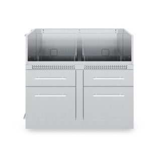 Szafka modułowa zaprojektowana z myślą o zabudowie grilla z 5 głównymi palnikami. Wykonana z wysokiej jakości stali szlachetnej 304 wyróżnia się wyjątkową odpornością i trwałością, dzięki czemu zachowuje swój estetyczny wygląd nawet po wielu sezonach użytkowania na świeżym powietrzu. Cztery przestronne szuflady pomieszczą zarówno duże naczynia, jak i drobne akcesoria. Zróżnicowana pojemność ułatwi logiczne uporządkowanie wszystkiego - od przypraw po narzędzia do grillowania. Szuflady zostały wyposażone w gumowe uszczelki, które chronią wnętrze przed kurzem i wilgocią, dzięki czemu szafka nie niszczy się od środka, a przechowywane akcesoria pozostają w idealnym stanie Prowadnice z cichym domykiem zapewniają płynne i bezgłośne zamykanie nawet przy częstym użytkowaniu. Szafka posiada cztery regulowane nóżki, które umożliwiają odpowiednie wypoziomowanie oraz montowany bezpośrednio do nich cokół maskujący, nadający jej spójny i elegancki wygląd. Otwory wentylacyjne umożliwiają prawidłową cyrkulację powietrza, gwarantując bezpieczeństwo użytkowania.