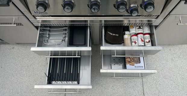 Cztery szuflady o różnej głębokości zapewniają przestrzeń na wszystko, co potrzebne podczas grillowania - od przypraw i akcesoriów po większe i mniejsze narzędzia. Wszystko ma swoje miejsce i jest zawsze pod ręką.