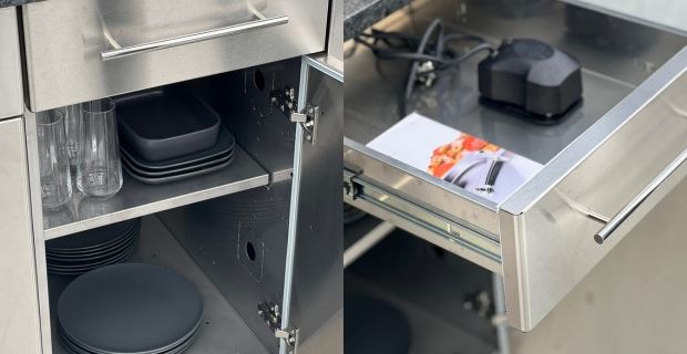 Szafka została wykonana z odpornej na korozję stali szlachetnej 304 - materiału, który doskonale sprawdza się na zewnątrz, nawet przy zmiennej pogodzie i intensywnym użytkowaniu. To gwarancja trwałości, dzięki której możesz cieszyć się bezproblemowym grillowaniem przez długie lata.
