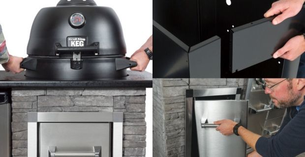 Chcesz stworzyć własną kuchnię ogrodową z grillem Broil King Keg™? Szafka z drzwiami została zaprojektowana po to, by stać się fundamentem Twojej zabudowy ogrodowej - trwałej, eleganckiej i w pełni dopasowanej do potrzeb. Korpus szafki wykonano z wytrzymałej stali i pokryto wysokiej jakości lakierem proszkowo-epoksydowym, który chroni przed działaniem warunków zewnętrznych. Dzięki temu mebel zachowuje nienaganny wygląd i pełną funkcjonalność nawet po wielu latach. Drzwi ze stali szlachetnej ozdobione dekoracyjną listwą nadają zabudowie nowoczesny, profesjonalny charakter. Możliwość montażu zawiasu po lewej lub prawej stronie sprawia, że dopasujesz kierunek otwierania do układu swojej kuchni. Zastosowane zawiasy z cichym domykiem gwarantują bezgłośne i płynne otwieranie i zamykanie nawet przy częstym użytkowaniu. Szafka posiada cztery regulowane nóżki umożliwiające precyzyjne wypoziomowanie, co gwarantuje stabilność. Moduł z powodzeniem wykorzystać można również jako mebel do przechowywania akcesoriów w niestandardowych zabudowach np. kuchniach ogrodowych wykończonych kamieniem, cegłą itp.