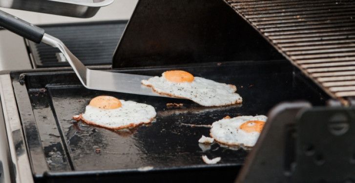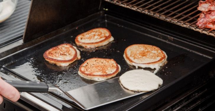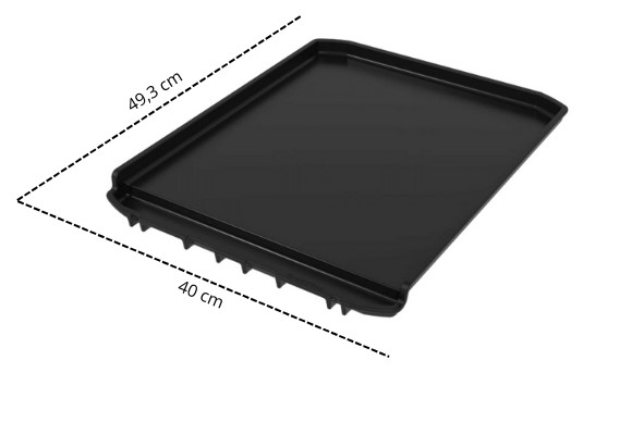 Plancha pasuje w miejsce 3 kratek rusztu, wystarczy je wyjąć i włożyć akcesorium. To szybki sposób, by zamienić swojego grilla w urządzenie do grillowania na dużej (aż 40 cm x 49,3 cm!), gładkiej powierzchni. Dzięki temu możesz przygotować dania, których nie przyrządzisz na klasycznym ruszcie: smash burgery, jajka sadzone, naleśniki, tortille, delikatne warzywa, owoce morza czy halloumi, a nawet smażony ryż w stylu azjatyckim.