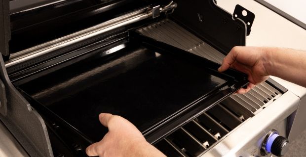 Dwustronna żeliwna plancha z gładką i ryflowaną powierzchnią daje pełną swobodę grillowania - od smash burgerów, jajek i naleśników po warzywa, street food i klasyczne angielskie śniadania. Grube żeliwo równomiernie się nagrzewa i długo utrzymuje temperaturę, dzięki czemu potrawy grillują się szybko i jednolicie, bez przypaleń czy niedopieczonych miejsc. Wysokie i wyprofilowane krawędzie gładkiej strony zapobiegają wypadaniu niewielkich składników podczas obracania i kierują nadmiar tłuszczu do znajdującej się z przodu rynienki. Dzięki temu potrawy są mniej tłuste, a czyszczenie planchy staje się prostsze. Planchę umieszcza się w miejscu trzech kratek rusztu po ich wyjęciu, co zapewnia stabilność, eliminuje ryzyko przesuwania się akcesorium podczas grillowania i chroni powłokę zabezpieczającą ruszt.