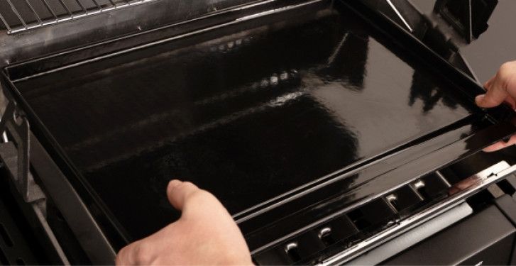 Dwustronna żeliwna plancha z gładką i ryflowaną powierzchnią daje pełną swobodę grillowania - od smash burgerów, jajek i naleśników po warzywa, street food i klasyczne angielskie śniadania. Grube żeliwo równomiernie się nagrzewa i długo utrzymuje temperaturę, dzięki czemu potrawy grillują się szybko i jednolicie, bez przypaleń czy niedopieczonych miejsc. Wysokie i wyprofilowane krawędzie gładkiej strony zapobiegają wypadaniu niewielkich składników podczas obracania i kierują nadmiar tłuszczu do znajdującej się z przodu rynienki. Dzięki temu potrawy są mniej tłuste, a czyszczenie planchy staje się prostsze. Planchę umieszcza się w miejscu dwóch kratek rusztu po ich wyjęciu, co zapewnia stabilność, eliminuje ryzyko przesuwania się akcesorium podczas grillowania i chroni powłokę zabezpieczającą ruszt.