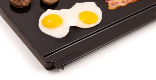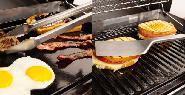 Plancha pasuje doskonale w miejsce rusztów, wystarczy je wyjąć i włożyć akcesorium. To szybki sposób, by zamienić swojego grilla w urządzenie do grillowania na dużej (aż 50 cm x 37 cm!), gładkiej powierzchni. Dzięki temu możesz przygotować dania, których nie przyrządzisz na klasycznym ruszcie: smash burgery, jajka sadzone, naleśniki, tortille, delikatne warzywa, owoce morza czy halloumi, a nawet smażony ryż w stylu azjatyckim.