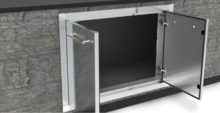 Podwójne drzwi do zabudowy Broil King to praktyczny element wykończenia kuchni ogrodowej. Tworzą elegancki front wnęki, umożliwiając swobodny dostęp do jej wnętrza. Wykonanie z wysokogatunkowej stali szlachetnej 304 zapewnia odporność na korozję i warunki atmosferyczne, dzięki czemu drzwi zachowują elegancki wygląd przez wiele lat. Gumowe uszczelki skutecznie chronią wnętrze przed kurzem i wilgocią, zapewniając optymalne warunki do przechowywanych akcesoriów, narzędzi i innego wyposażenia. To praktyczne dopełnienie zabudowy, które podkreśla jej styl i wygodę użytkowania.