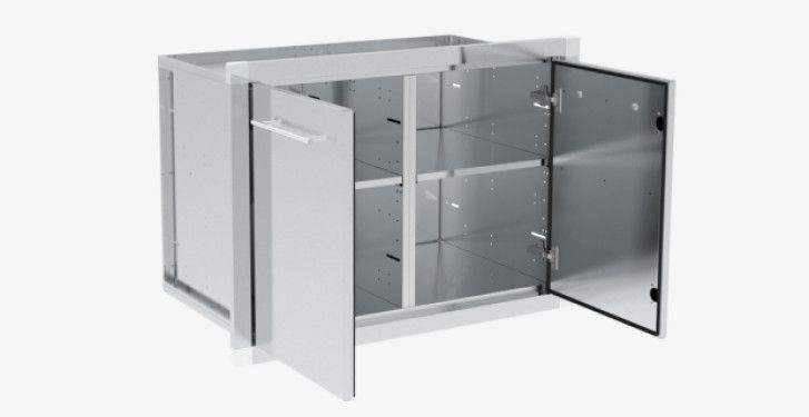 Wkład do zabudowy podwójne drzwi to gwarancja maksymalnej organizacji. Został wyposażony w cztery przestronne półki, dzięki którym z łatwością uporządkujesz wszystkie akcesoria, naczynia i narzędzia, jakie potrzebne są w Twojej kuchni na świeżym powietrzu.
