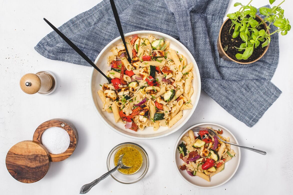 2. Oryginalna sałatka makaronowa z grillowanymi warzywami i serem halloumi