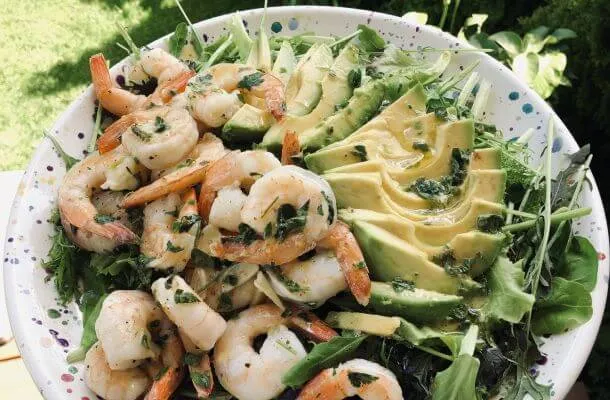 3. Lekka sałatka na grilla z krewetkami i awokado