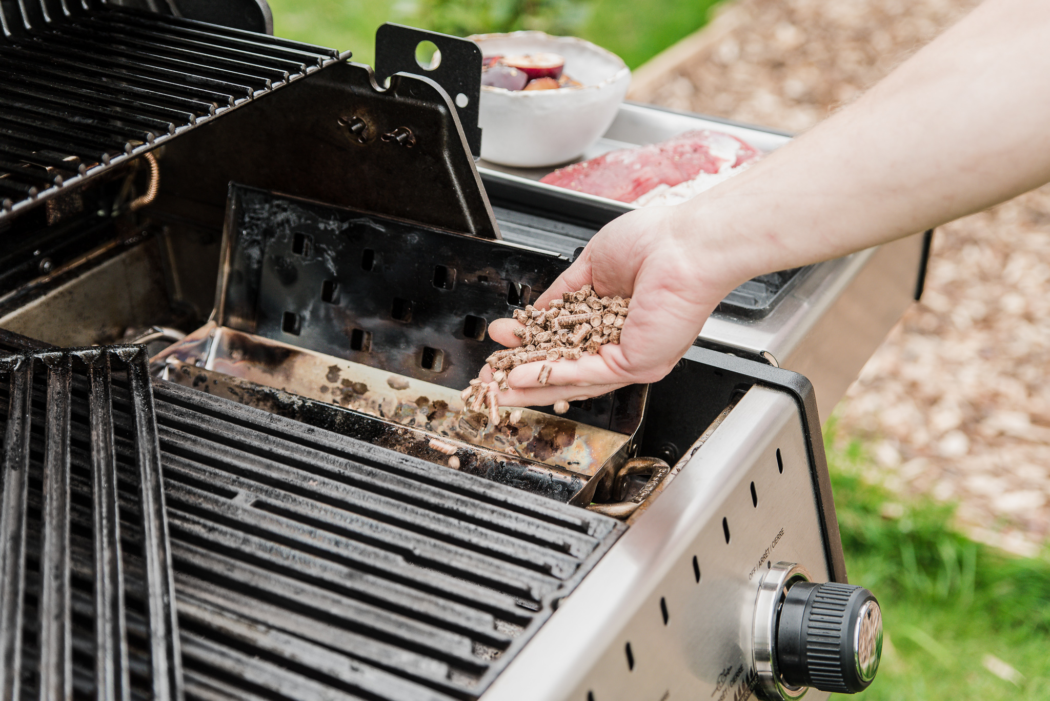 Zarówno ryby, jak i inne grillowane potrawy możesz dodatkowo wzbogacić o aromat wędzenia, wykorzystując stalową skrzynkę wypełnioną pelletem lub wiórkami wędzarniczymi, która umieszczona na aromatyzerze stopniowo uwalnia dym i nadaje potrawom głęboki, charakterystyczny smak.