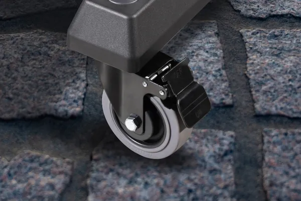 Kiedy grill stoi już w docelowym miejscu, wystarczy aktywować blokady, aby zapobiec jego przesuwaniu. Dostęp do nich od zewnętrznej strony jest wygodniejszy i bardziej komfortowy podczas pracy. W razie konieczności zmiany miejsca grilla w szybki sposób zwolnisz blokady i przesuniesz urządzenie jednym płynnym ruchem.