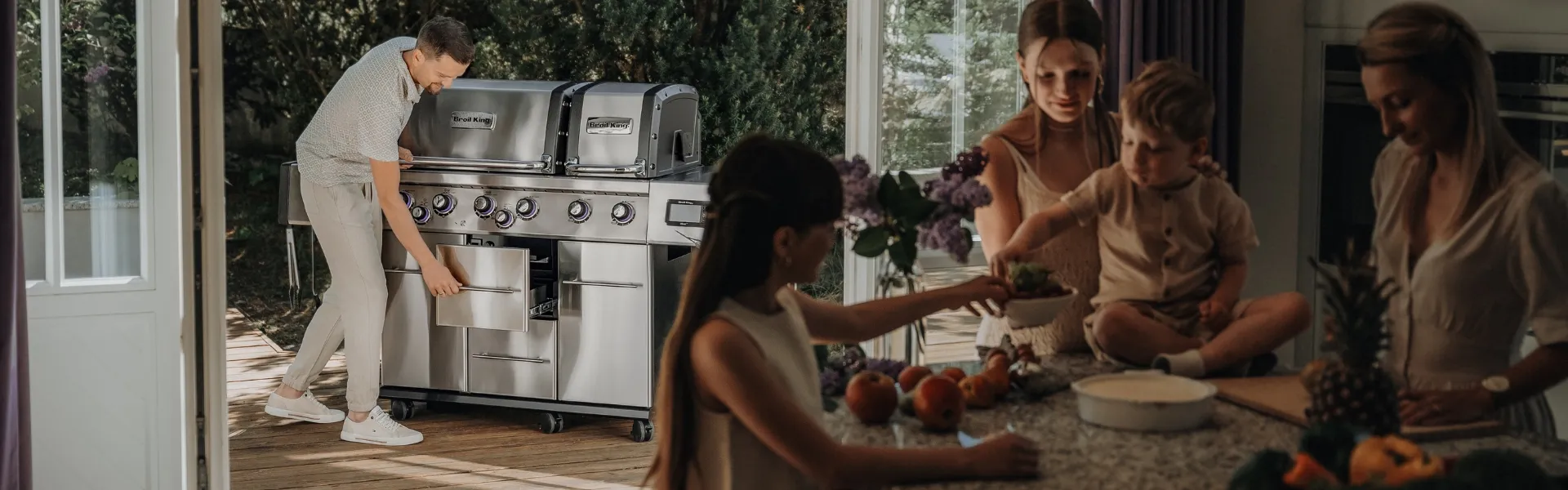 Grill gazowy 6-palnikowy Broil King oferuje nie tylko dużą powierzchnię grillowania, ale także praktyczne elementy, które sprawiają, że przygotowywanie posiłków w ogrodzie staje się wyjątkowo komfortowe. Półki boczne zapewniają dodatkowe miejsce do odkładania podręcznych akcesoriów i przygotowywania potraw, a pojemna szafka pozwala na bezpieczne podłączenie butli z gazem propan-butan oraz przechowywanie większych akcesoriów i narzędzi do grillowania. Całość uzupełniają solidne koła transportowe, dzięki którym mimo wagi przetransportujesz grill w dowolnym miejsce w Twojej strefie wypoczynkowej. Takie rozwiązania sprawiają, że grillowanie to czysta przyjemność. Wszystko, czego potrzebujesz, masz zawsze pod ręką, a Twoja kuchnia ogrodowa działa sprawnie i bez ograniczeń bez względu na to, ile posiłków w danym momencie gotujesz.