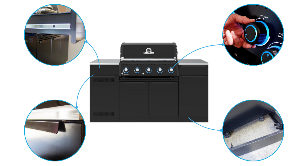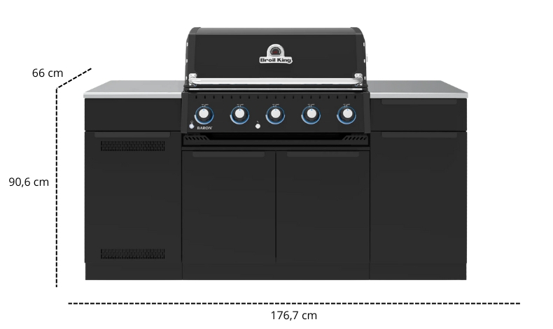 Wyspa Baron™ 520 Shadow to gotowe i kompletne rozwiązanie. Dzięki szafkom modułowym Baron oraz grillom do zabudowy z tej serii można jednak zaprojektować kuchnię ogrodową również całkowicie od podstaw. Stworzona w ten sposób przestrzeń z łatwością sprosta Twoim oczekiwaniom.