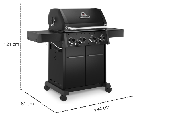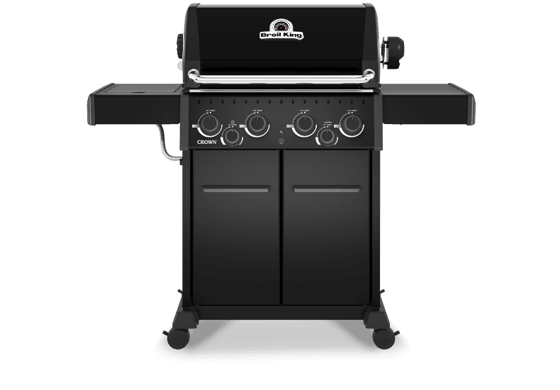 Crown™ 490 Shadow pokryto czarną farbą proszkową Black Knight, zapewniającą trwałość i odporność na warunki atmosferyczne. Jej eleganckie, matowe wykończenie sprawia, że grill doskonale prezentuje się w każdym ogrodzie, tarasie czy patio.