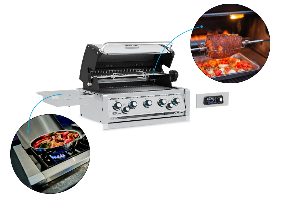 Na będącym częścią wyspy grillu gazowym Imperial™ QS 590 do zabudowy wykorzystać można akcesoria z systemu Do More, które pozwalają na jednoczesne przygotowywanie różnorodnych potraw. Dzięki temu z łatwością zaspokoisz kulinarne preferencje wszystkich swoich gości.
