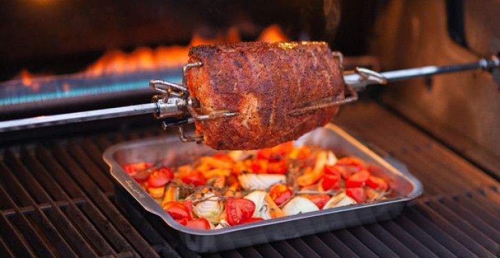 Będący częścią grilla zestaw rożna obrotowego pozwoli Ci uzyskać perfekcyjnie wypieczone potrawy. Powolne, równomierne obracanie sprawia, że mięso pozostaje soczyste w środku i chrupiące na zewnątrz. Idealne rozwiązanie do przyrządzania kurczaka, pieczeni, a przy użyciu zestawu szpikulców - również szaszłyków.
