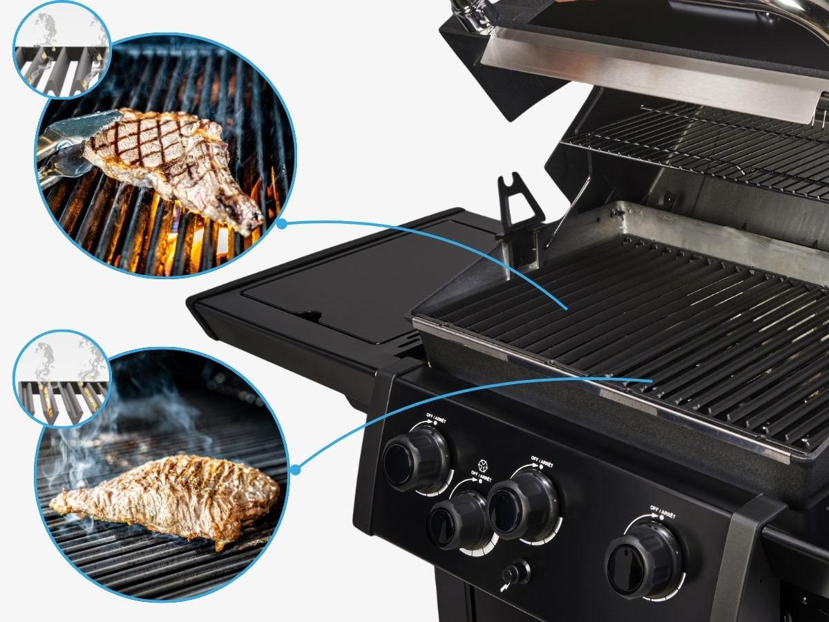 Grill Royal™ 340 Shadow posiada kuchenkę boczną, która pozwala na przygotowywanie dodatków bez odchodzenia od grilla. Dzięki niej z łatwością podgrzejesz sosy, zagotujesz wodę czy zrobisz bulion, oszczędzając czas i miejsce. To praktyczne rozwiązanie sprawia, że cały proces grillowania staje się jeszcze bardziej wygodny i wszechstronny.