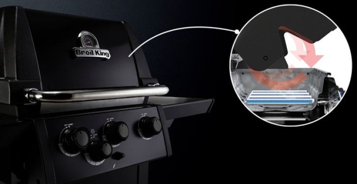 Piekarnik grilla Royal™ 340 Shadow działa jak termos zachowując wysoką temperaturę nawet przy częstym otwieraniu pokrywy. Dzięki ograniczonym otworom wentylacyjnym w dnie i pokrywie z powłoką ze stali szlachetnej ciepło krąży wewnątrz komory, co przekłada się na szybsze grillowanie i mniejsze zużycie gazu.