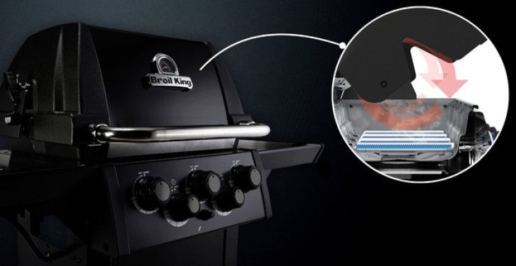 Piekarnik grilla Royal™ 390 Shadow działa jak termos zachowując wysoką temperaturę nawet przy częstym otwieraniu pokrywy. Dzięki ograniczonym otworom wentylacyjnym w dnie i pokrywie z powłoką ze stali szlachetnej ciepło krąży wewnątrz komory, co przekłada się na szybsze grillowanie i mniejsze zużycie gazu.