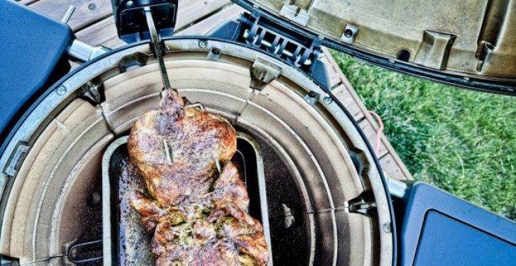 Grill KEG™ Kamado przystosowany jest do montażu rożna obrotowego. Dzięki powolnemu, równomiernemu obracaniu przyrządzane na nim mięso pozostaje soczyste w środku, a na zewnątrz nabiera apetycznej chrupkości. To doskonałe rozwiązanie do pieczenia kurczaka, pieczeni i innych większych kawałków mięs.
