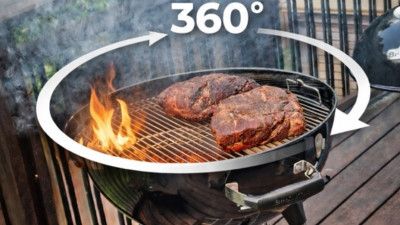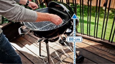 Emaliowany ruszt unosi węgiel nad dno paleniska, zapewniając stały dopływ powietrza od spodu, dzięki czemu węgiel pali się równomiernie. Dwa wsporniki umożliwiają ustawienie stref żaru - mocnej do grillowania bezpośredniego oraz łagodniejszej do grillowania pośredniego i dopiekania potraw.