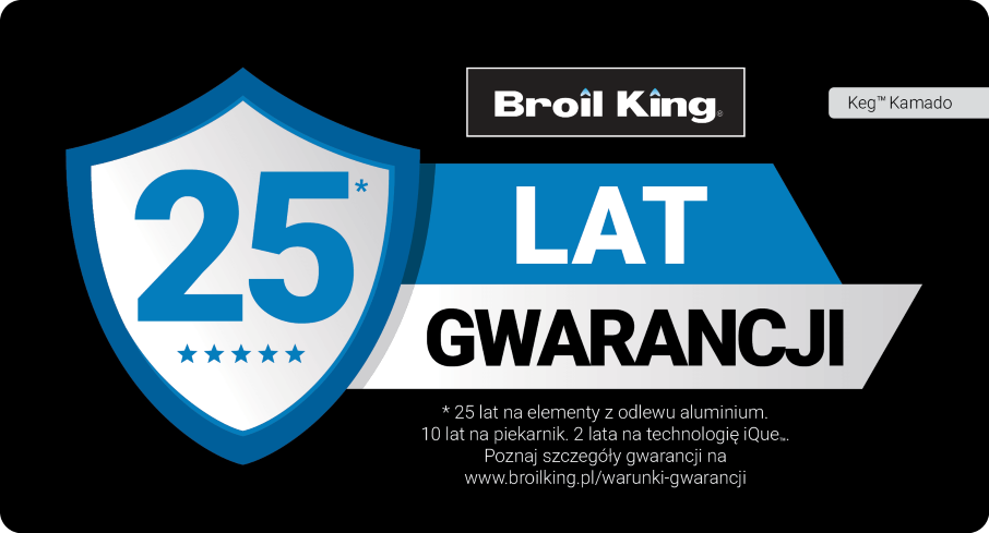 Keg jest solidny, wytrzymały i trwały. Z tego względu dajemy 10 lat gwarancji na korpus grilla. W odróżnieniu od grilli ceramicznych nie musisz się martwić o to, że pęknie.