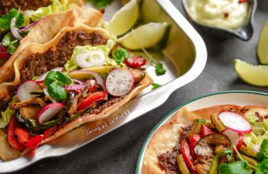 Umieść placki tortilli w brytfannie tuż pod piekącym się mięsem. Za pomocą ostrego nożna ścinaj warstwy przypieczonego mięsa na podgrzaną tortillę. Ściągnij placki z grilla, polej mięso sosem. Na placku umieścić możesz również ulubione warzywa. Smacznego!