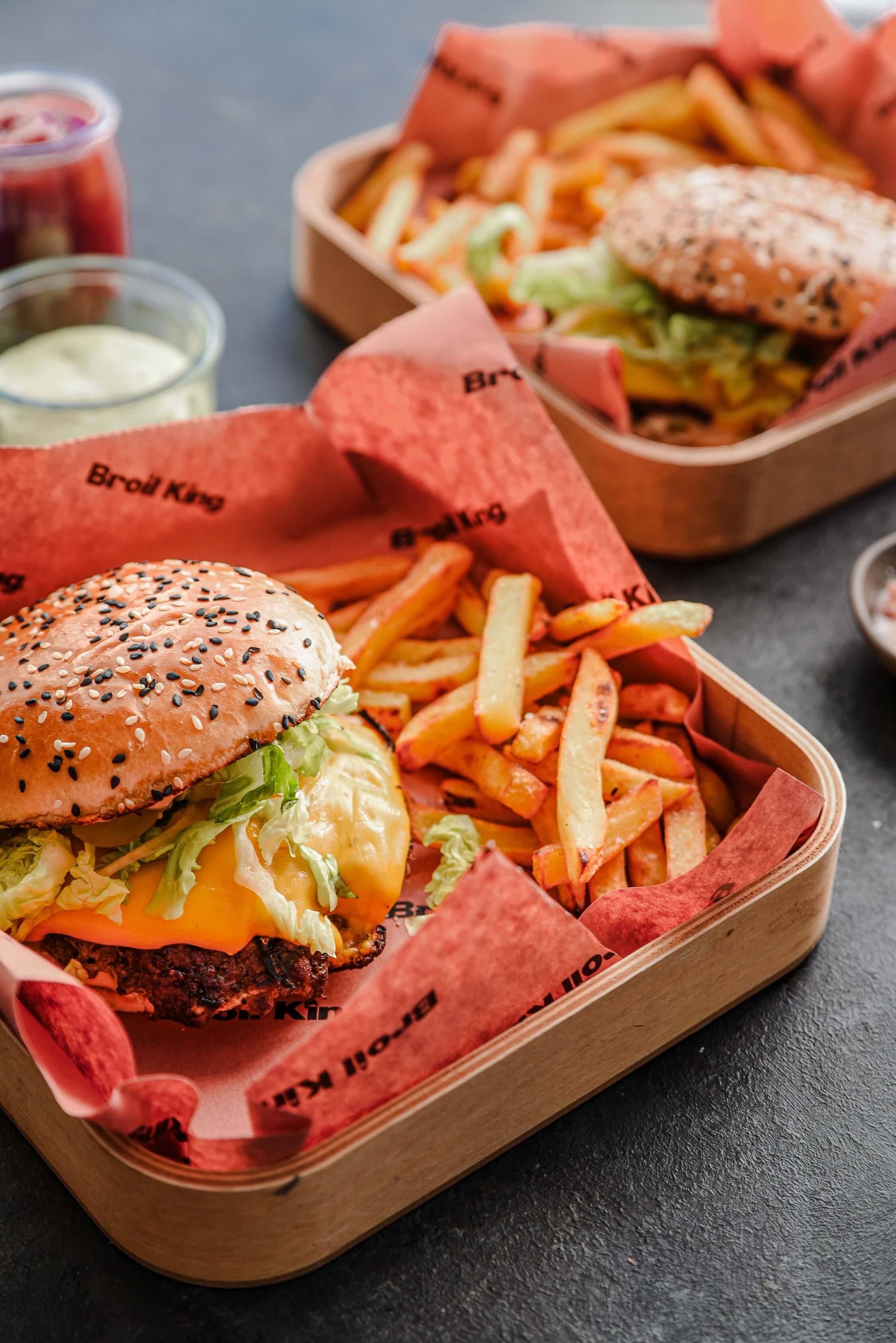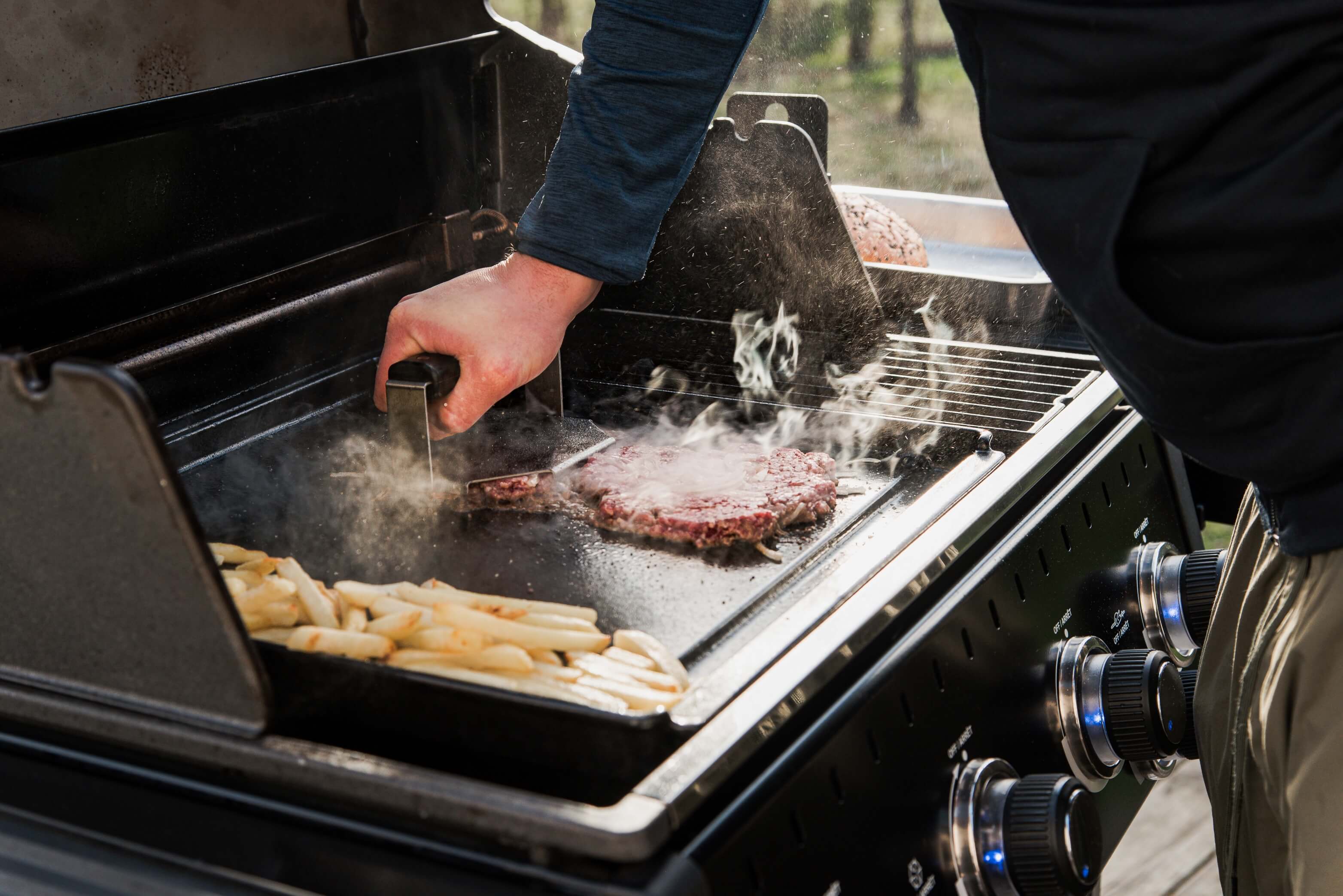 220°CSmash burgery z chrupiącymi frytkami to klasyk grillowego street foodu, który w pełni wykorzystuje możliwości planchy. Charakterystyczne, cienkie kotlety są mocno dociskane do rozgrzanej powierzchni, dzięki czemu szybko się smażą i zyskują intensywnie przypieczoną, chrupiącą skórkę. Wysoka temperatura i bezpośredni kontakt mięsa z planchą pozwalają uzyskać wyrazisty smak i idealną teksturę burgerów. Frytki przygotowane na planchy stają się złociste i chrupiące, tworząc spójne, sycące danie z mięsem.