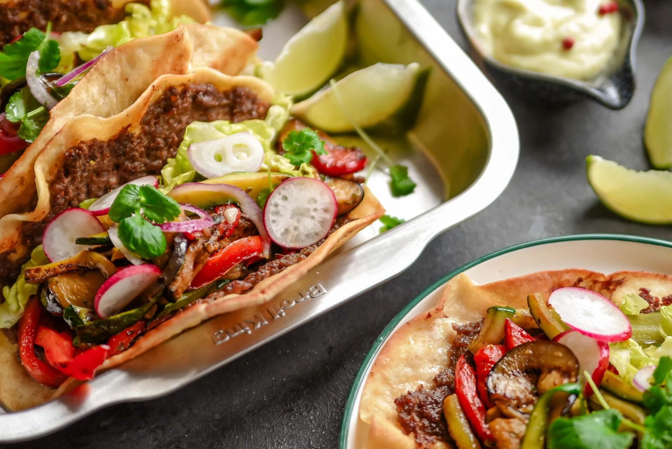 Przepis na tacos z planchy z mięsem smashowanym i grillowanymi warzywami